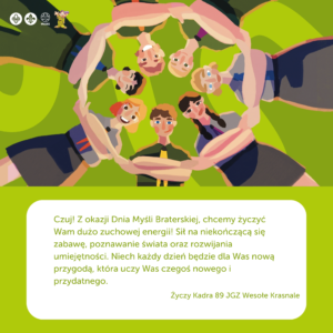 Z racji zbliżającego się święta wszystkich zuchów i harcerzy, czyli Dnia Myśli Braterskiej w dniu 24 lutego, zachęcamy do wykonania laurki z życzeniami, plakatu, obrazka czy jakiejkolwiek innej formy prezentu dla zuchenek i zuchów oraz harcerek i harcerzy z 60 PDH Ło-Sie, nowej (starej) wielopoziomowej drużyny w naszym szczepie.