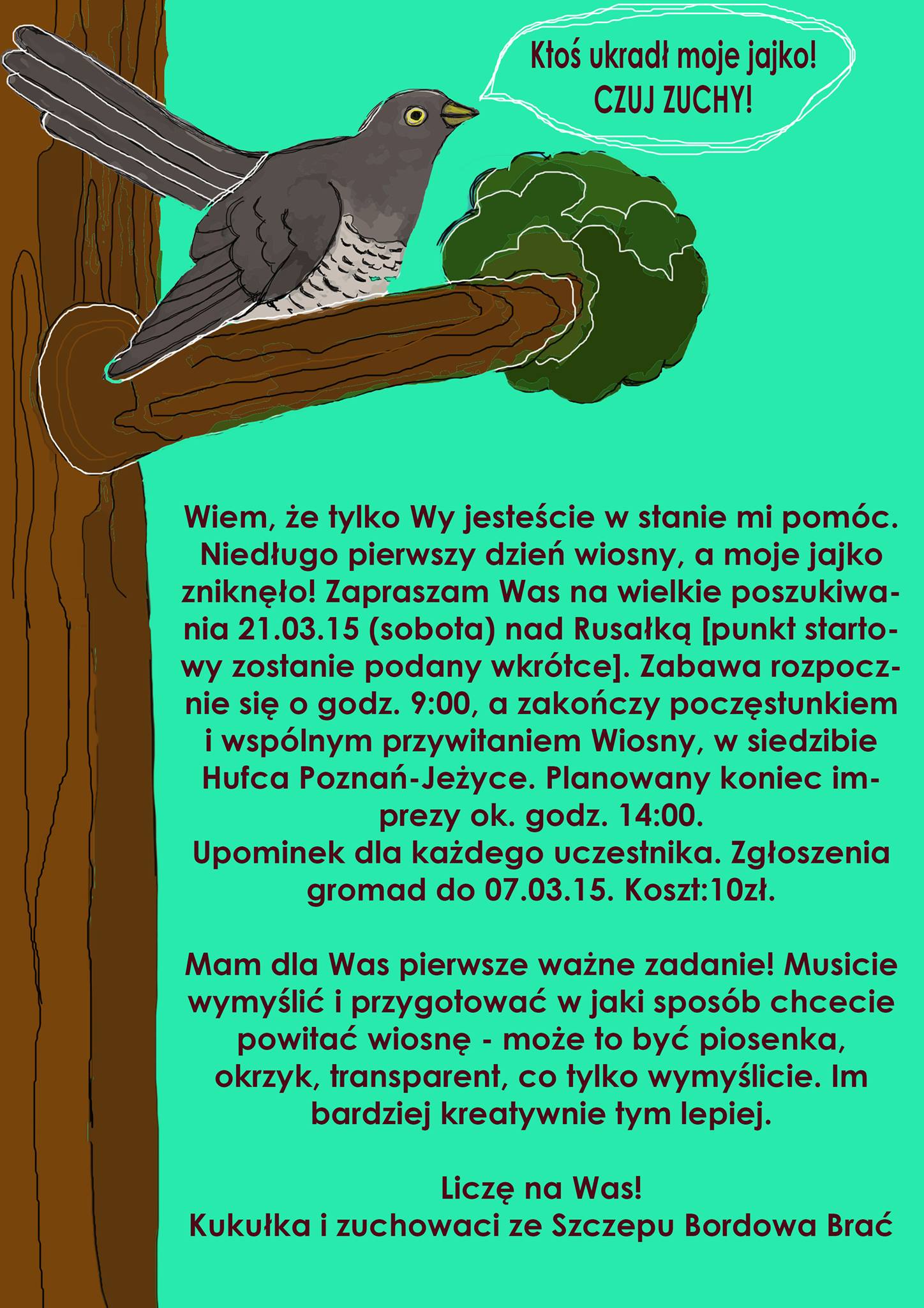 A już 21.03 zapraszamy na I Zuchowy Rajd i pomoc Kukułce ;) Dokładniejsze informacje pojawią się już niedługo! Mimo to już teraz proszę o deklaracje udziału w rajdzie (do 6.03).