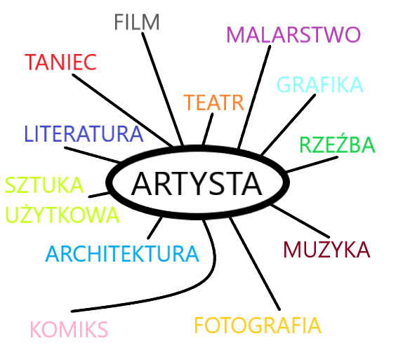 Po pierwsze, grafika prezentująca niektóre z dziedzin, jakimi może zajmować się artysta: